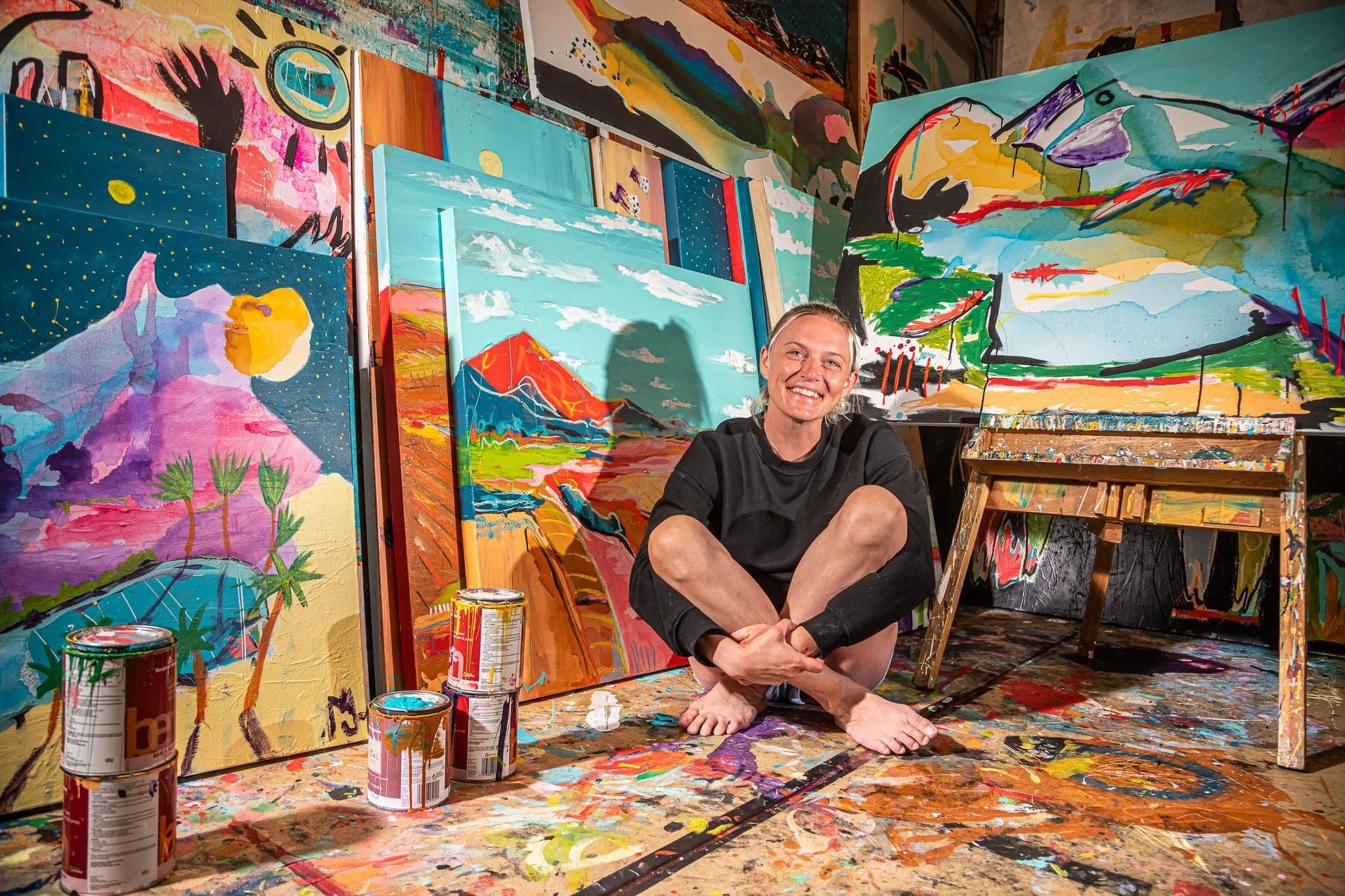 Mandy Stobo is a bold, visionary artist whose work pulses with the raw energy of the modern West. Based in Bozeman, Montana, and originally from Calgary, Alberta, Mandy creates evocative works that bridge the gap between her rugged Northern roots and the vast expanse of the Big Sky. Her style is a fearless exploration of memory and place, defined by thick, intuitive brushstrokes and a palette that feels both grounded in the earth and electrified by the future.