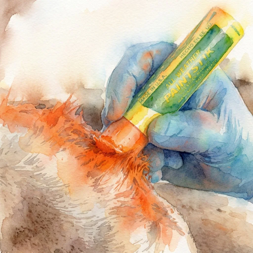 When disaster strikes and every second counts, the All-Weather Paintstik is an essential "analog" backup for your emergency kit. This highly visible, non-toxic livestock marker allows you to write your phone number directly onto your horse’s coat—or better yet, the number of an out-of-area contact who isn't affected by the local emergency. Whether the coat is wet or dry, this marker stays put through rain and wind, ensuring that if your horse is found, the rescuer has an immediate way to reach someone who can help. For us, it’s a non-negotiable part of our "go-bag"; in a rural area where cell towers might go down, having your contact info physically on the animal is the ultimate insurance policy for a safe reunion.